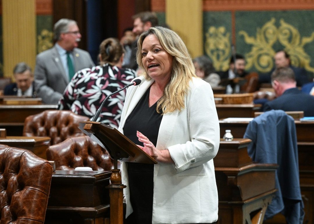 PHOTO INFORMATION: State Rep. Jamie Thompson speaks on House Bill 4901 on Thursday, April 16 before its unanimous passage in the Michigan House. The bill adjusts licensing cycles for nurses and speech-language pathologists from two years to three, aligning these fields with others in the health care industry.